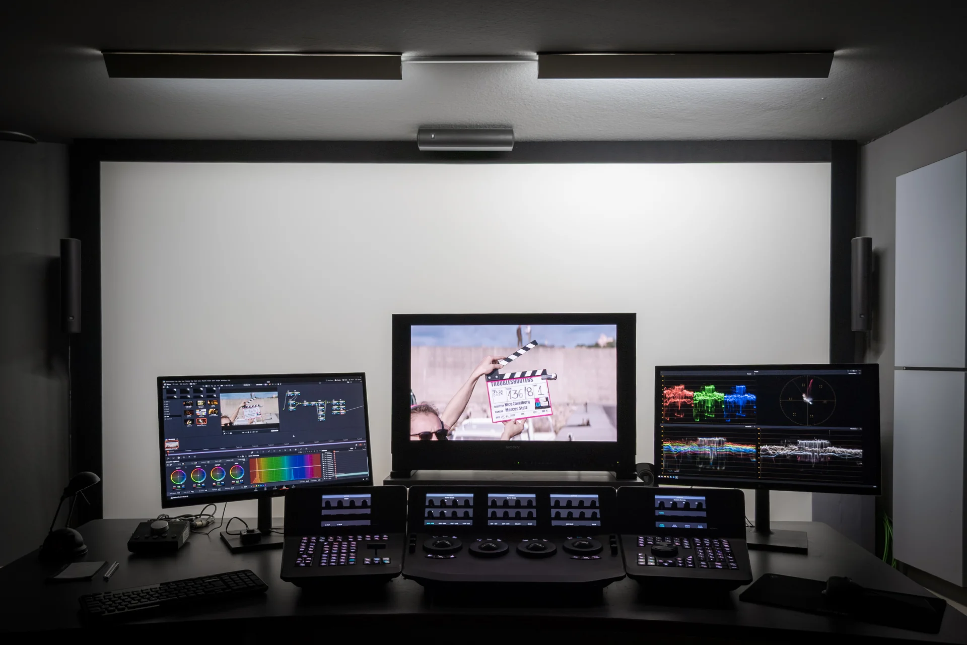 Wir setzen auf State-of-the-Art-Technologie: Projektoren von Christie, Barco und JVC sowie präzise kalibrierte TV-Abnahmemonitore garantieren eine perfekte Bildbewertung – sowohl für Kino als auch TV und Streaming.