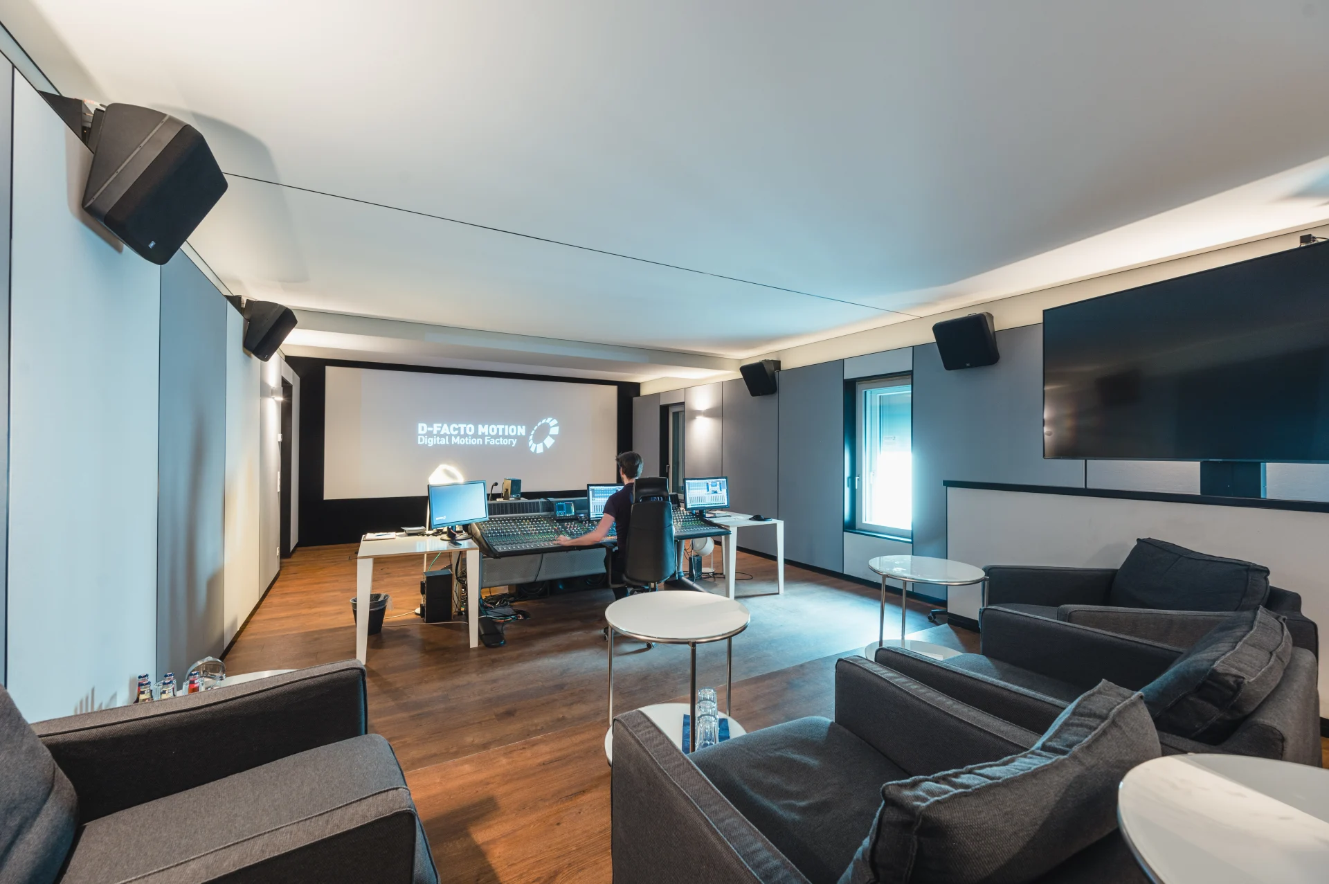 Gemischt wird bei uns in Stereo, 5.1, 7.1 oder Dolby Atmos Home – je nach Auswertung und Projektanforderung. Für Kinomischungen stehen eigene Säle mit 7.1-System zur Verfügung.